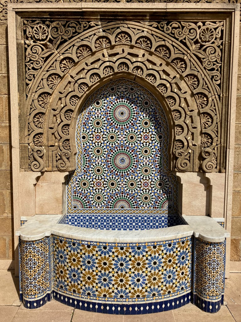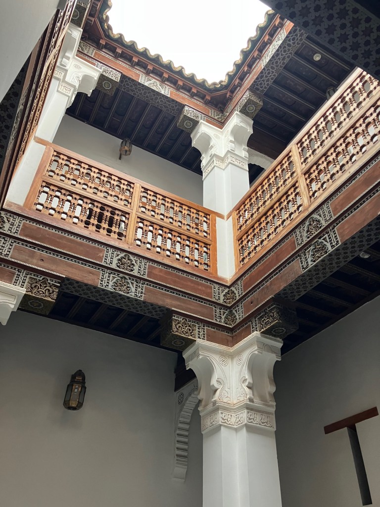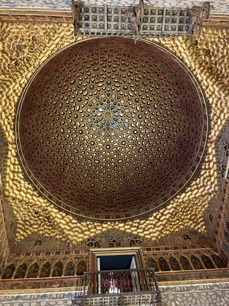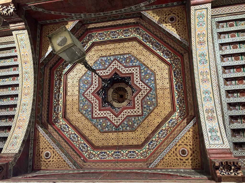 It was not until we were in Morocco that we learned that this Andalusian culture traveled back across the Mediterranean after the Moors (and Jews) were expelled in 1492. In Morocco, we had expected to find much older, original sources and inspiration for the Moorish monuments in Spain. Instead we found that the oldest historical buildings that appeared similar to the famous ones in Spain dated only to the early 16th century—after the expulsion from Spain. The ornately decorated riads that Morocco is justly famous for all incorporate intricate, colorful tiles, magnificent wood-and-gold domed ceilings, horseshoe-shaped arches, and plaster walls carved in detailed geometric designs. Sound familiar? This is known to Moroccans as the Andalusian style of architecture, and it was brought to Morocco by the former residents of Al-Andalus in Spain—who had gone there from North Africa in the first place! (Insert “mind blown” hand gestures here.)