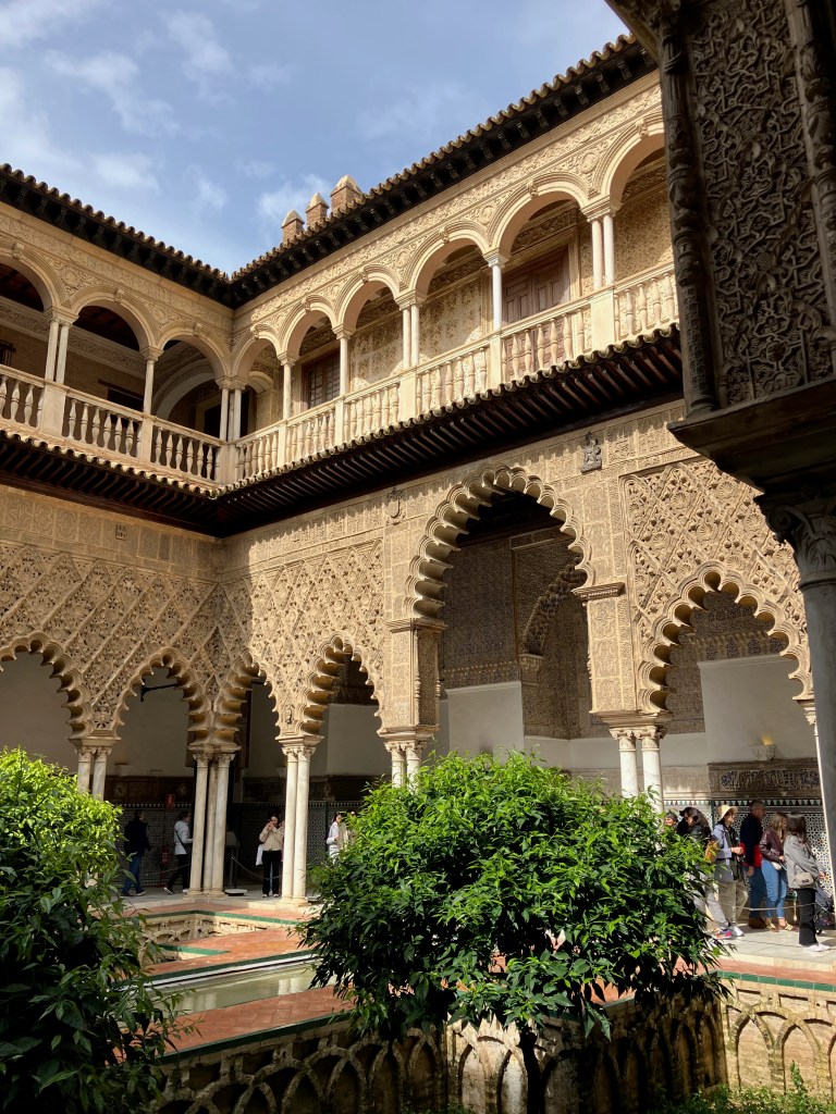 When we lived in Spain two years ago, we saw the Moorish influence over and over again. Treasured historic sites like the Alcazar in Seville, the Alhambra in Granada, and the Mezquita in Córdoba draw millions of tourists from all over the world. There we admired ornately carved geometric tile designs, fantastically intricate wood and gold carved ceilings, horseshoe-shaped arches, and peaceful, fragrant courtyard gardens with their melodic fountains and ingenious water systems. All these and many more sites across southern Spain reflect the 800 years in which Spain and Portugal were ruled by the Moors until the Reconquista (reconquest), when Christian armies drove them out in the late 15th century.
