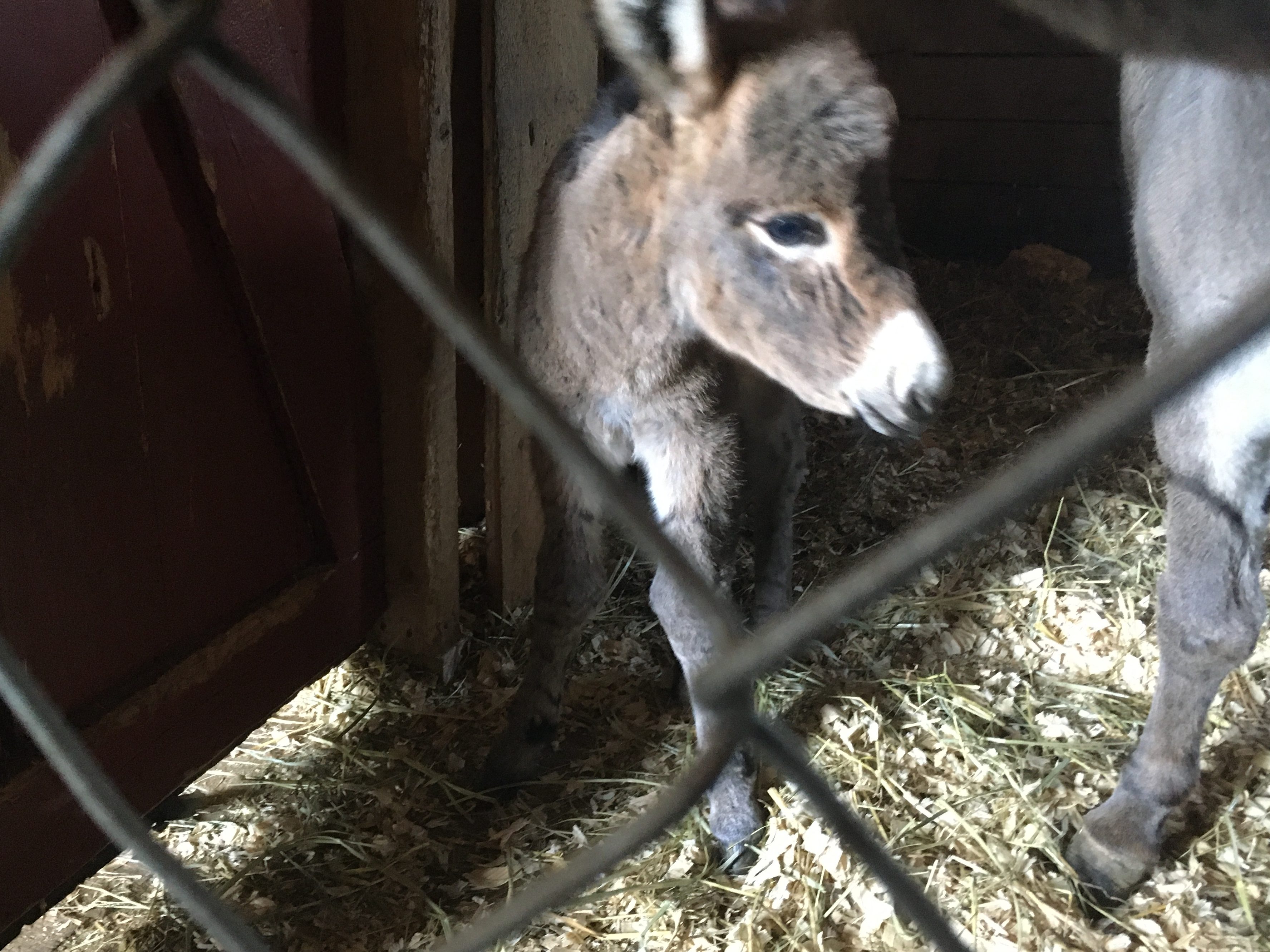 We were privileged to meet this fluffy furball less than a day after its birth on the farm where we buy duck eggs. Miniature donkeys are able to walk as soon as they’re born — after more than a year of gestation.