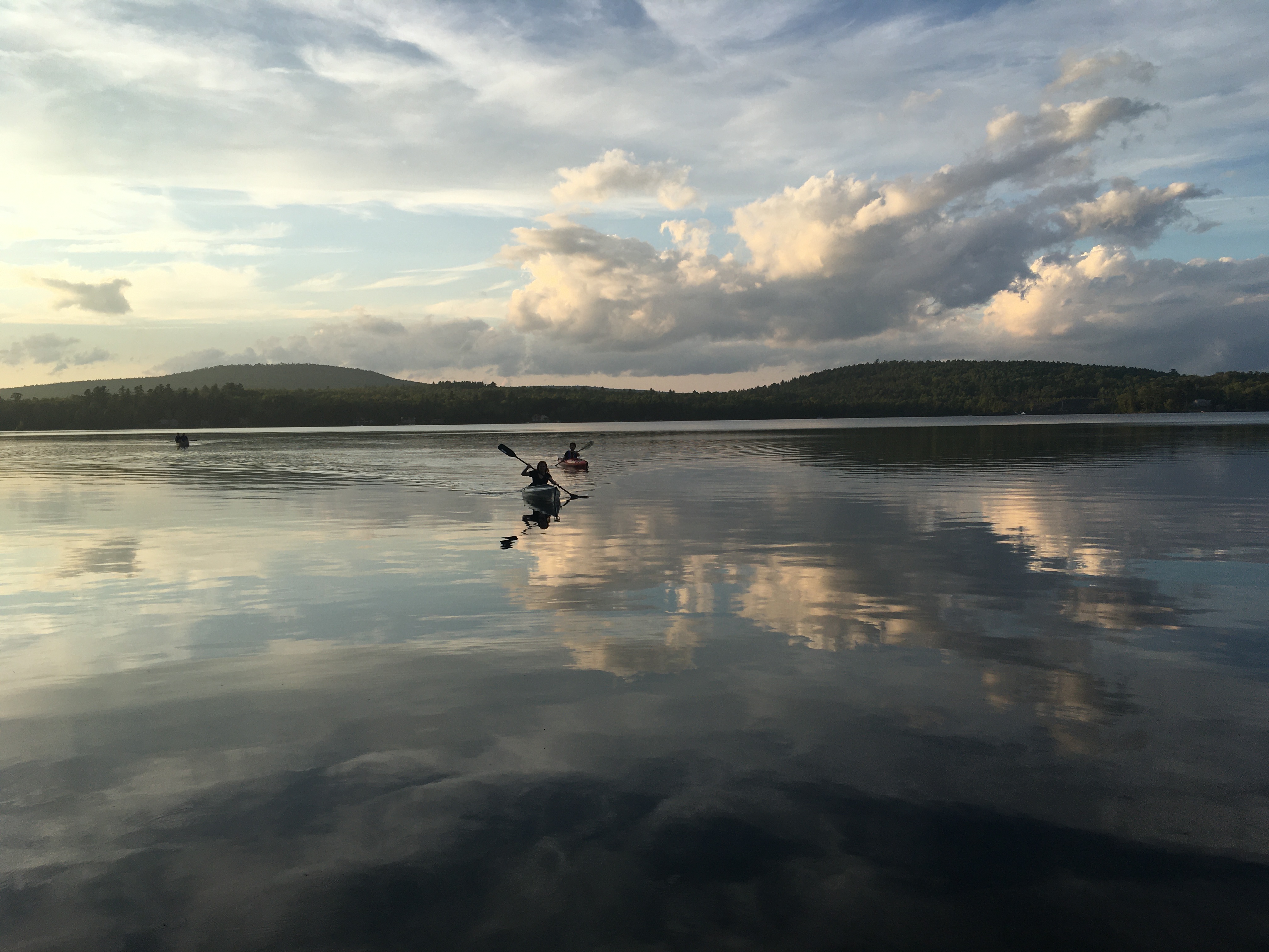 The lake isn’t always this calm, but when it is, paddling a kayak is smooth and silky. And paddlers get double the view with what’s above reflected below.